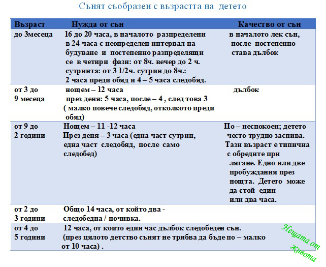 Усмивката не е единственият подарък, който детето ще направи на майка си в течение на този втори етап от живата си. То ще я ощастливи и със спокойни нощи. Досега може би ви е пречило да спите с плачовете си, но между първият и четвъртият месец детето постъпено започва по - малко да плаче.На 6 седмици то е плакало средно по 3 часа на ден, на три месеца то плаче по 1/4 час на ден. И то не защото кърмачето е станало изведнъж послушно. както и новороденото не плаче от лошотия. То плаче, защото няма друг начин да каже , че много неща го безпокоят: много е увито, или му е хладно , памперсът му е мокър или е гладно, има колики, нервите му сякаш са оголени. - всичко го кара да подскача и най - лошото е, че не може да заспи дълбоко и да забрави своите несгоди. Ако между 3 и 4 месец всичко тръгва добре, това се дължи на факта, че малко по малко детето се научава да върши две основни неща - да спи и да се храни.Първоначално непрекъснатата му сънливост постъпено отстъпва място на истинският сън и на истинското събуждане, особено в края на деня -15 минути през първият месец и един час на третият.