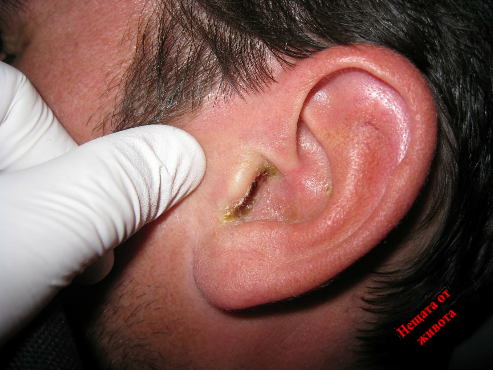 1. Признаци на външен отит: при натиск върху ухото се появява болка, сърбеж в ушната мида.